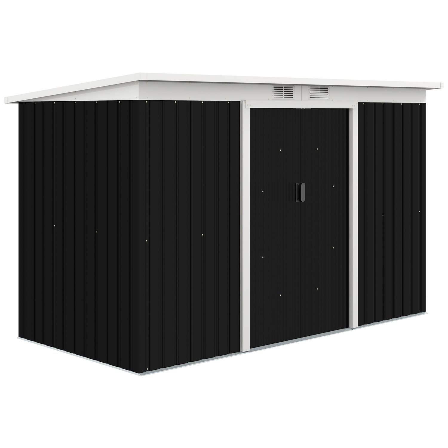 Denna redskapsbod är den perfekta lösningen för att organisera och skydda dina trädgårdsredskap och tillbehör. Med en robust ram av galvaniserad stålplåt erbjuder den en stabil och hållbar konstruktion som står emot väder och vind. Det lutande taket säkerställer att regnvatten effektivt rinner av, vilket minskar risken för vattenansamling och potentiella skador. De breda skjutdörrarna är designade för att ge enkel och bekväm åtkomst, vilket gör det smidigt att hämta och förvara dina saker.